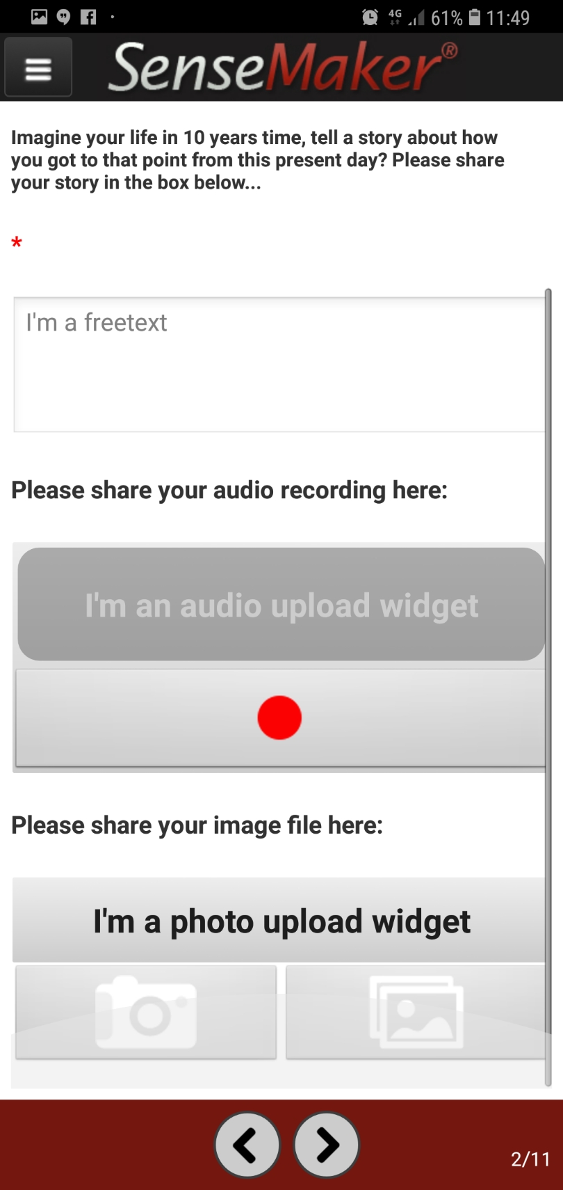 We kicked off by designing prompting questions, which can be any combination of text, photo or video. A decision was made to use text and after some deliberations we settled on – ‘Imagine your life 10 years from now; tell a story about how you got to that point from this present day.’