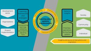 Despite a broad consensus on the necessity of fundamental change, endeavors to transform food systems appear to have reached an impasse. Greater engagement with the uncertainty of food systems could open up new ways of triggering transformation directed towards achieving more sustainable and inclusive outcomes. As a way of reorienting current food system change efforts to better embrace uncertainty, we propose a framework for a transformative learning system that serves two aims. First, the framework highlights the importance of locally led action, experimentation, and learning, providing a way of focusing on the core capacities and skills needed to act in the face of uncertainty. Second, it outlines the different types of learning functions that need to operate at different scales of food systems to trigger disruptive, coordinated, and more democratic change processes. The operationalization of this framework necessitates shifts in roles and ways of working across the landscape of food system interventions. The discussion will address the who and how of this potential change, as well as its subsequent impact on the operational modalities of individuals, the process of change itself, and the structures and institutions involved in the process. We argue that embracing uncertainty and the focus on learning has the potential to facilitate a more agile and locally relevant change process. This would allow actors to learn from decentrally pursued food systems reforms, leading to the emergence of diverse pathways that complement on-going efforts and potentially accelerate transformation efforts. Read the full paper here